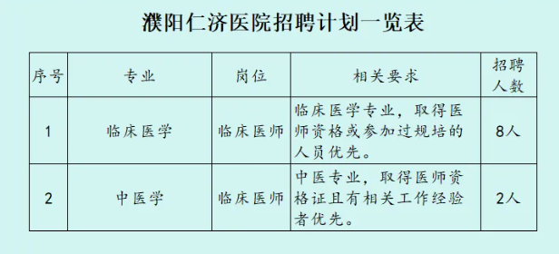 1.现场报名:持本人简历,毕业证、医师资格证或执业证复印件到濮阳仁济医院综合办公室报名。